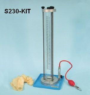 Het instrument bestaat uit een plexiglas cilinder 1600 ml. capaciteit ondergebracht in een aluminium legering gieten, een rubberen pomp met stopkraan, een dichtheid plaat en 12 rubber ballonnen.