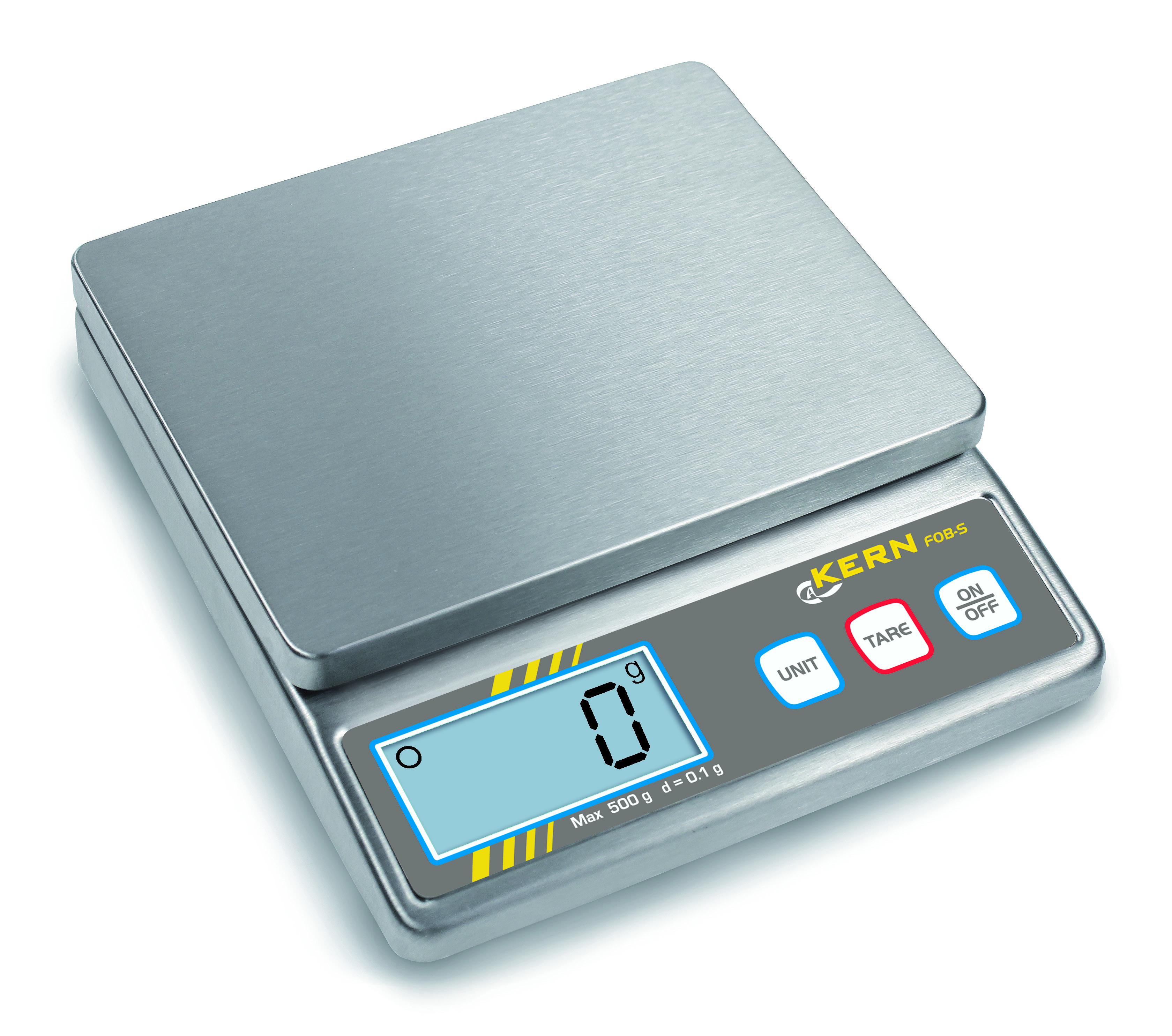 FOB 5K1S Compacte weegschaal 1 g : 5000 g Preiswerte Edelstahlwaage in kompakter Bauform . Behuizing en weegplateau van edelstaal. Gladde oppervlakken, daardoor gemakkelijk te reinigen. Conform HACCP-kwaliteitssysteem. Grote mobiliteit: dankzij compacte, vlakke constructie en laag eigen gewicht geschikt voor gebruik op meerdere plaatsen (keuken, verkoopruimte, marktkraam enz.). Veilige en tegen wegglijden beveiligde opstelling door rubberen pootjes. Startklaar: batterijen 9 V Block standaard, bedrijfsduur ca. 20 h|
