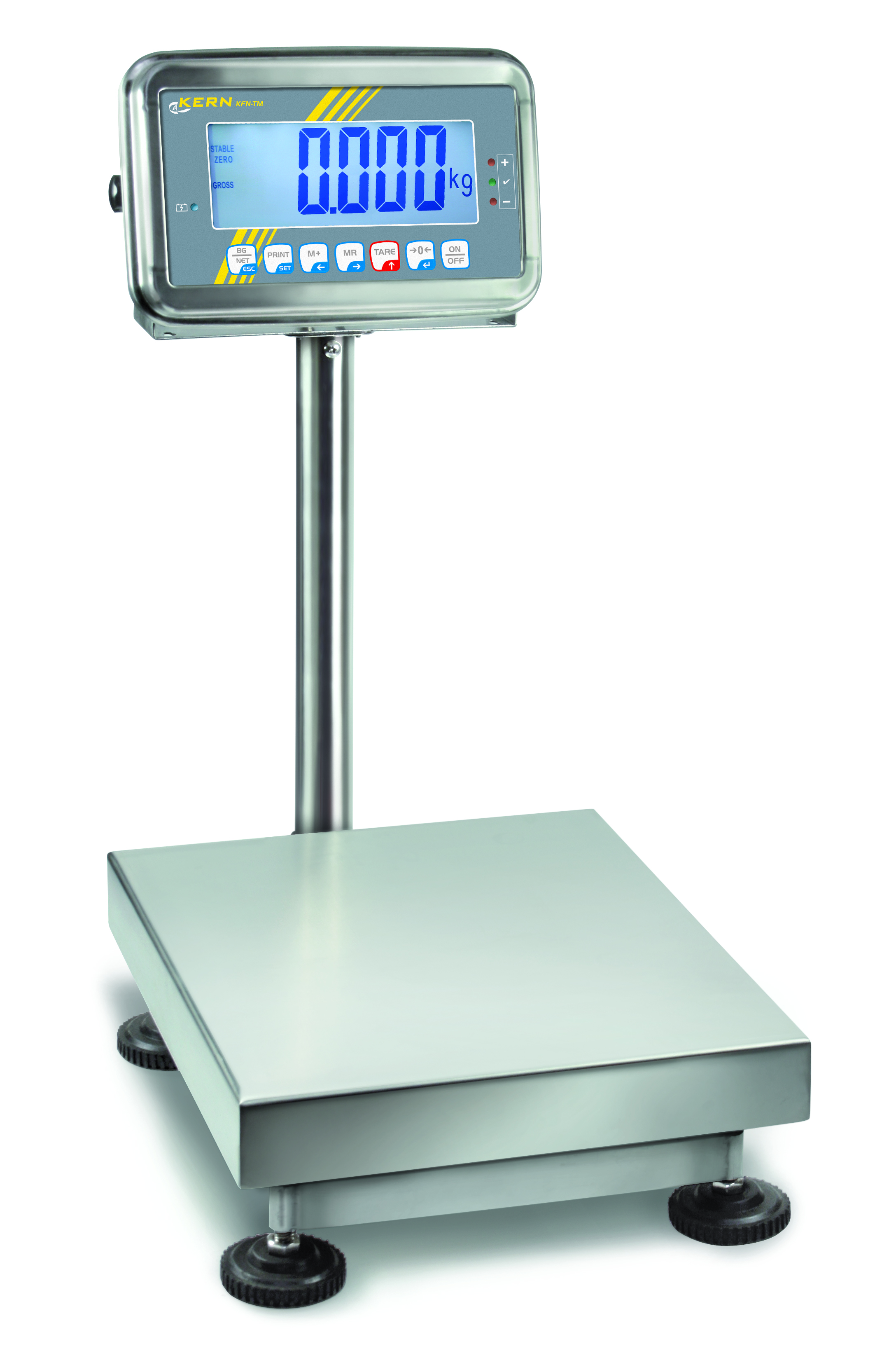 SFB 100K-2HM Plateauweegschaal 0,05 kg : 150 kg Roestvrijstalen plateauweegschaal, stof- en spatwaterbestendig IP65 en met ijkgoedkeuring [M] . Geschikt voor ruwe industriële toepassingen. Weegschaal geheel in RVS. Weegcel edelstaal, met siliconencoating. Opmerking: Silicone is niet geschikt voor contact met agressieve stoffen zoals zuren etc. of permanent gebruik in natte ruimtes.. Statief om de afleesinrichting hoger te plaatsen, standaard, voor modellen met weegplateau afmeting. statiefhoogte ca. 200 mm. statiefhoogte ca. 400 mm. Waterpas en stelschroeven voor het precies waterpas zetten van de weegschaal standaard, daardoor zeer nauwkeurige weegresultaten|